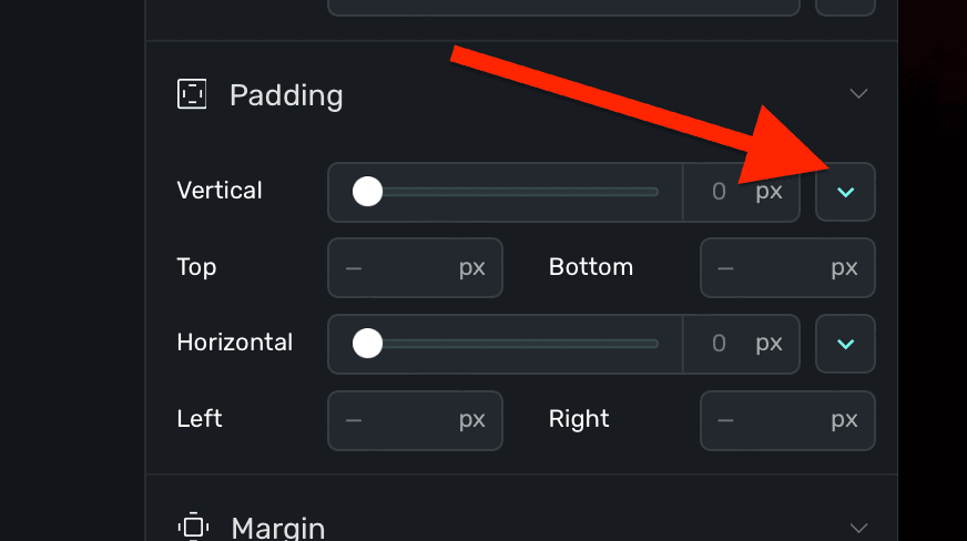 To have more granular control, expand each disclosure arrow to set only the top, bottom, left or right padding values: