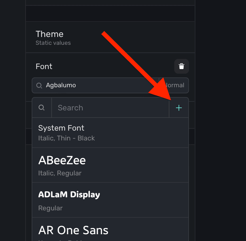 Using the default font variable, you can also add a custom font. Click the + button in the font variable to add one: